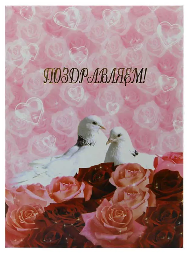 Папка адресная ламинированная А4 (пухлая) "Поздравляем" Два белых голубя в цветах
