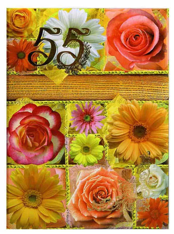 Папка адресная ламинированная А4 (пухлая) "55 лет" Цветы в коробочках