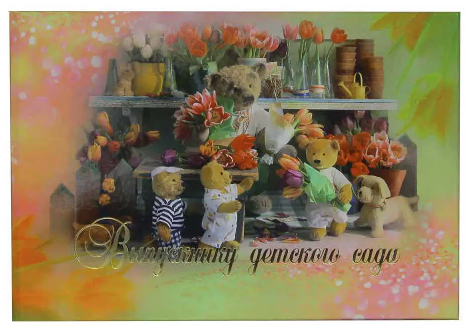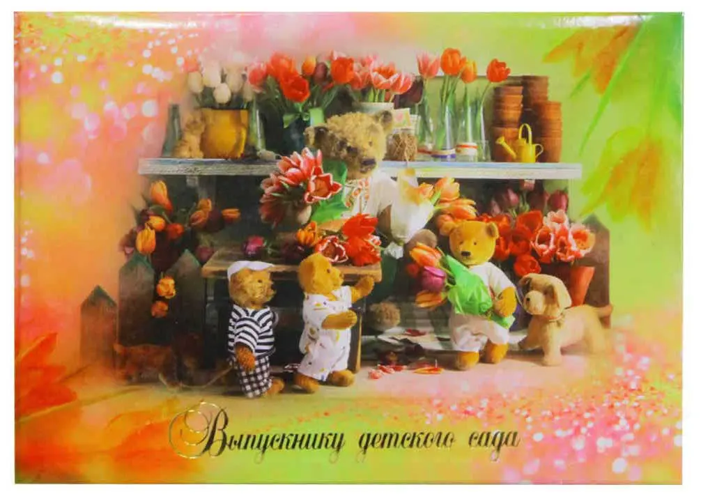 Папка адресная ламинированная А4 (пухлая) горизонт "Выпускнику детского сада" Мишки с цветами