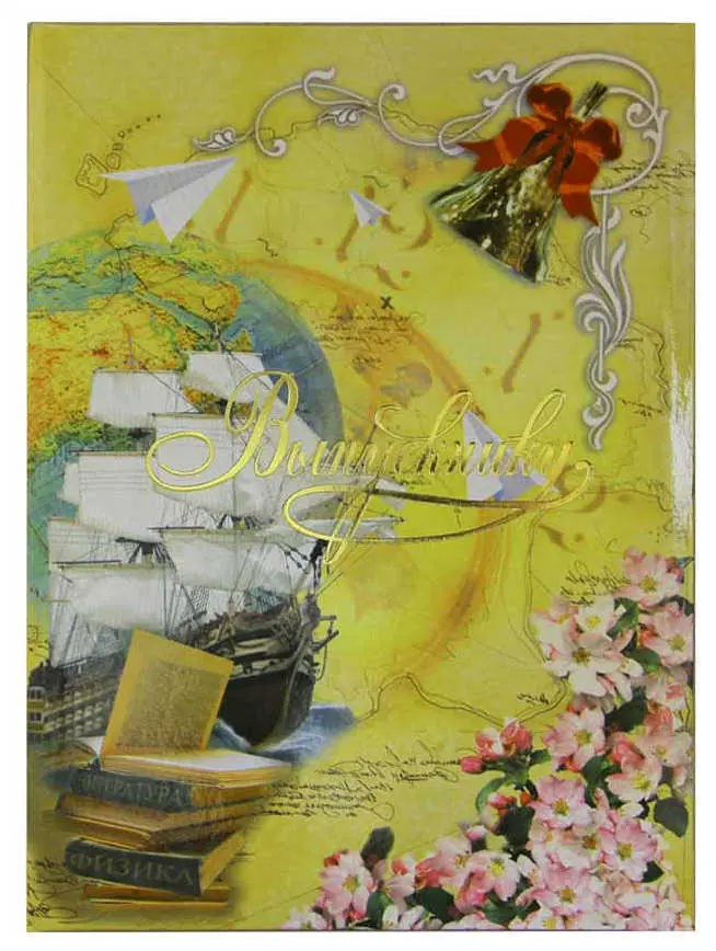 Папка адресная ламинированная А4 (пухлая) + 3 файла "Выпускнику" Колокольчик из цветов