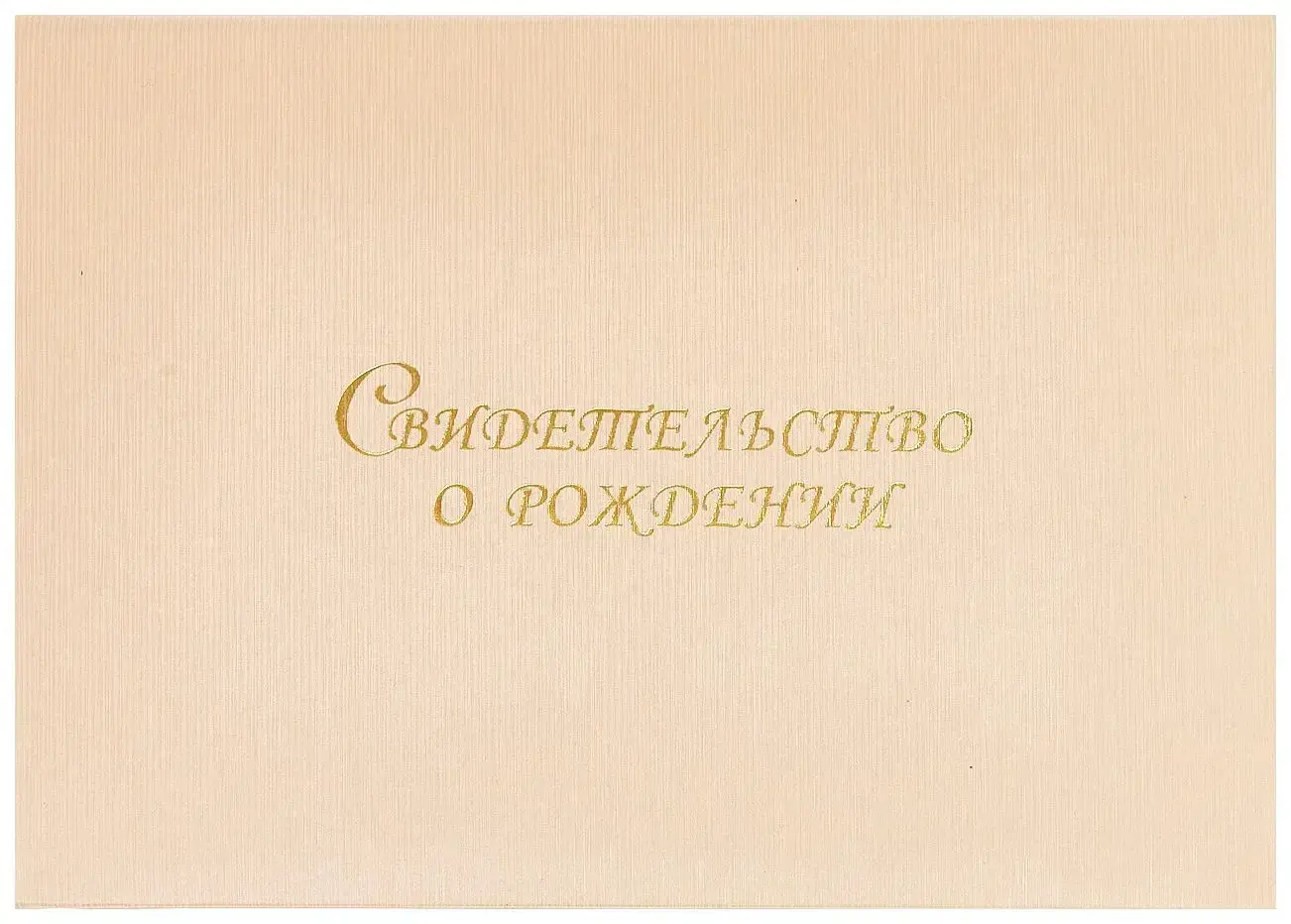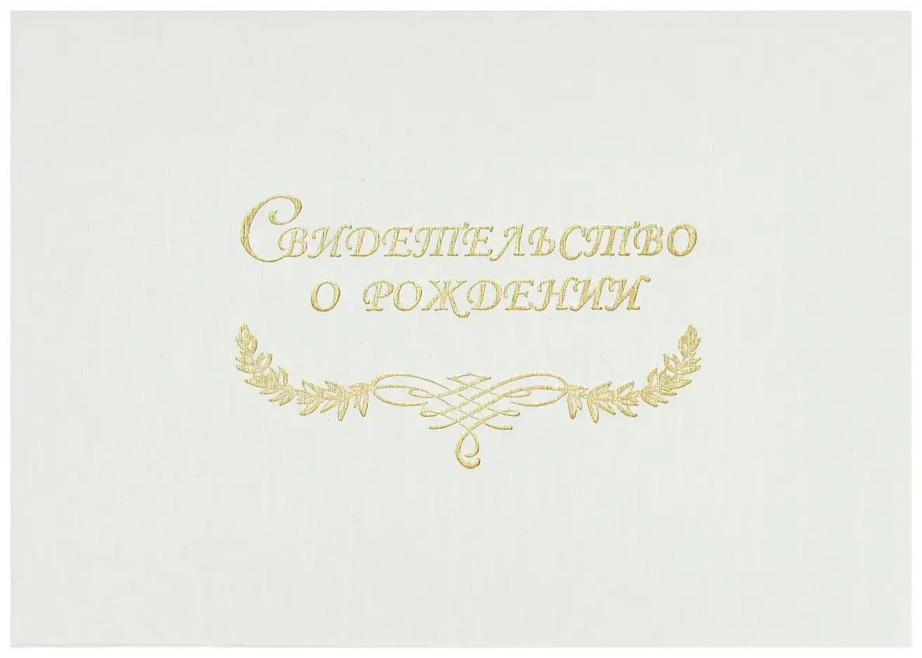 Папка с файлом дизайнерские переп.материалы А5 (пухлая) "Свидетельство о рождении" шелк слоновая кость