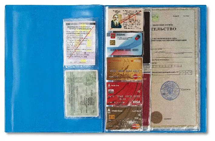 Папка "Семейные документы" ПВХ желе синее, с приваренным блоком (19 кармашков)
