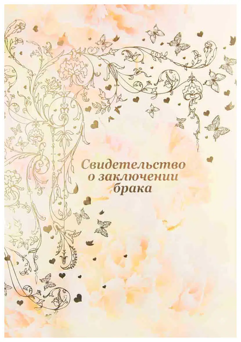 Папка с файлом дизайнерские переп.материалы А4 (пухлая) "Свидетельство о заключении брака с виньеткой" лепестки белые