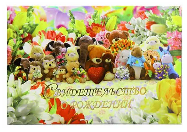 Папка с файлом ламинированная А5 (пухлая) "Свидетельство о рождении" Игрушки с сердечком