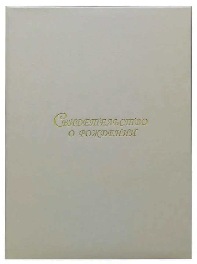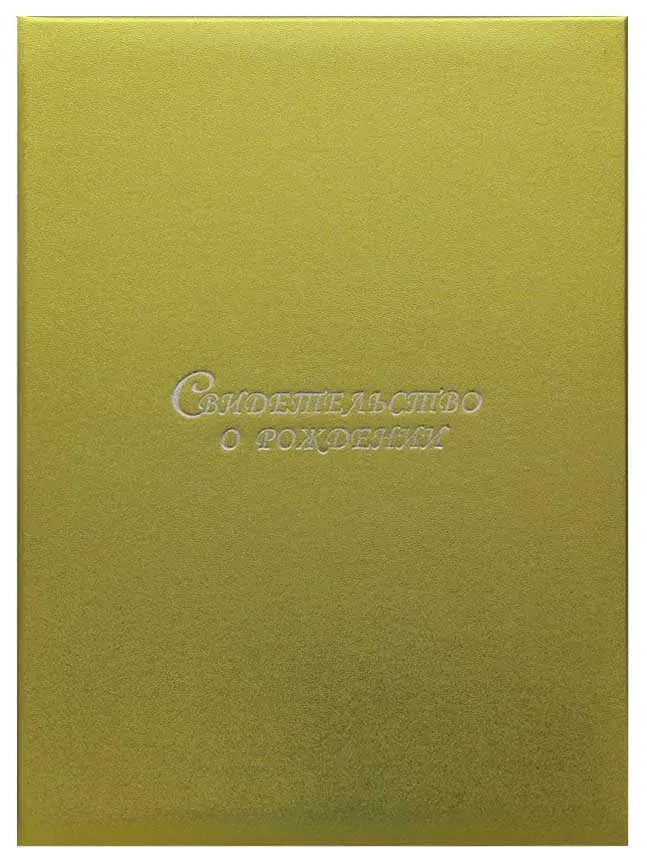 Папка с файлом дизайнерские переп.материалы А4 (пухлая) "Свидетельство о рождении" пыль золотая