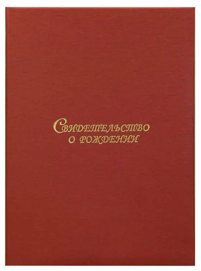 Папка с файлом дизайнерские переп.материалы А4 (пухлая) "Свидетельство о рождении" шелк красный