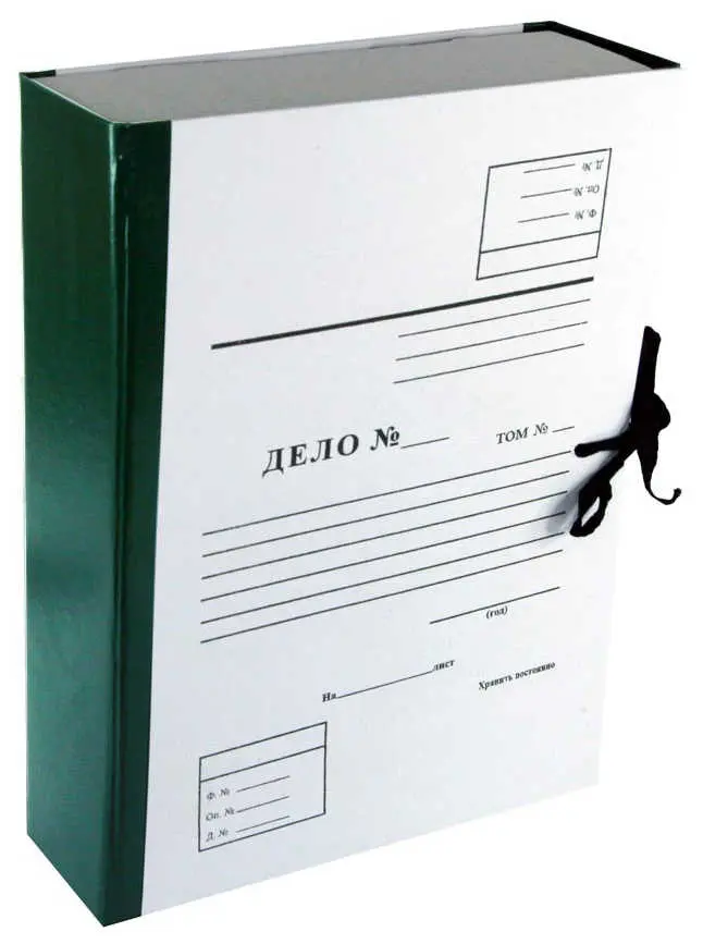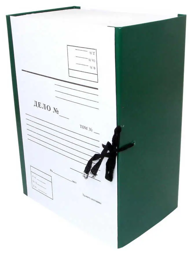 Архивный короб "Дело" А4, 80 мм, бумвинил, складывающийся, зеленый