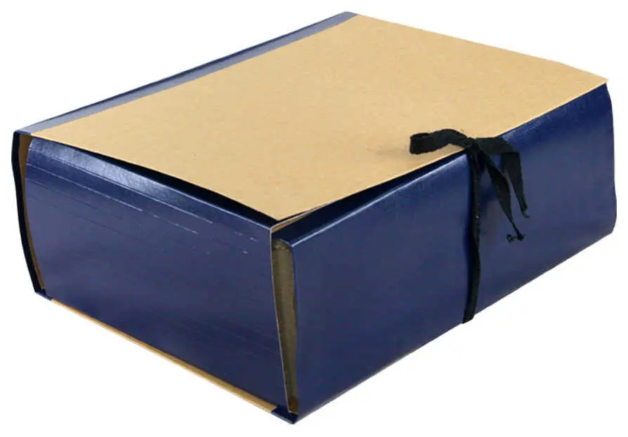 Архивная папка А4, 30 мм, крафт/бумвинил, с цельнокроенным гребешком, мягкие клапана, 4 завязки, синяя