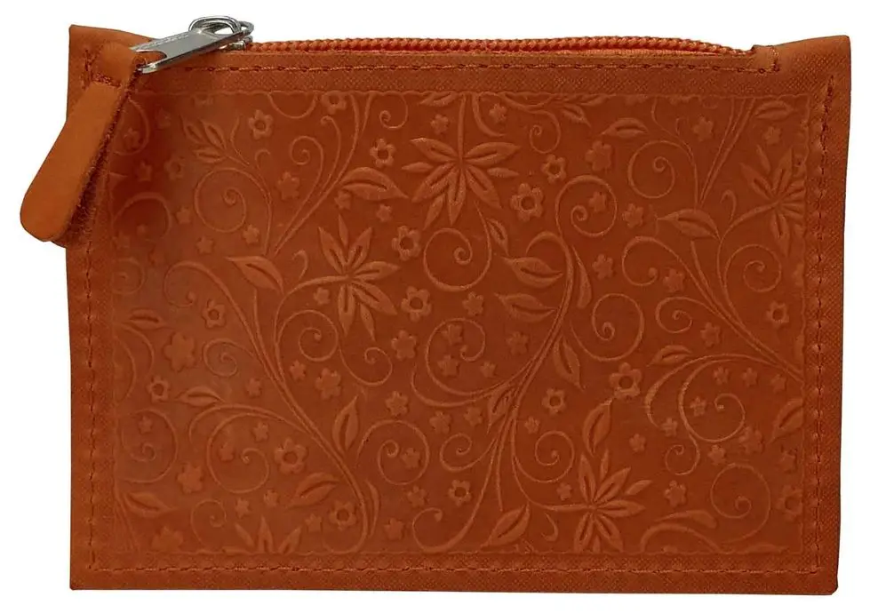 Кошелек для монет из натуральной кожи 12x8 см, рыжий, тиснение по коже конгрев "Флаверс"