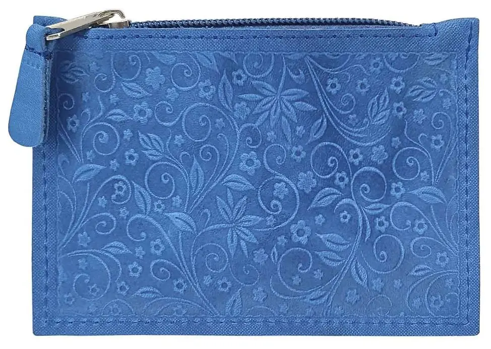 Кошелек для монет из натуральной кожи 12x8 см, голубой, тиснение по коже конгрев "Флаверс"