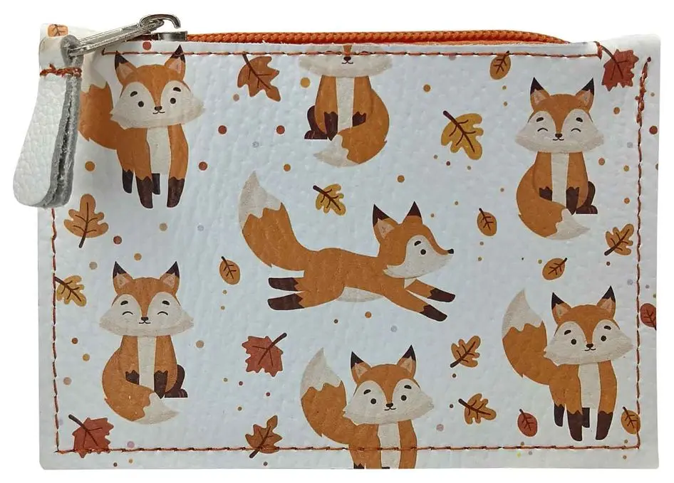 Кошелек для монет из натуральной кожи 12x8 см, цветной рисунок по коже "Лисички"
