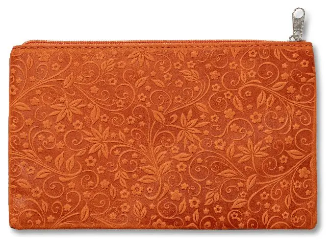 Косметичка из натуральной кожи 21x0,5x12,5 см, рыжая, тиснение по коже конгрев "Флаверс"