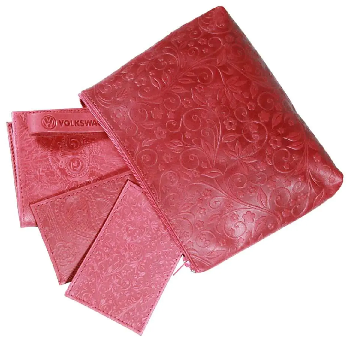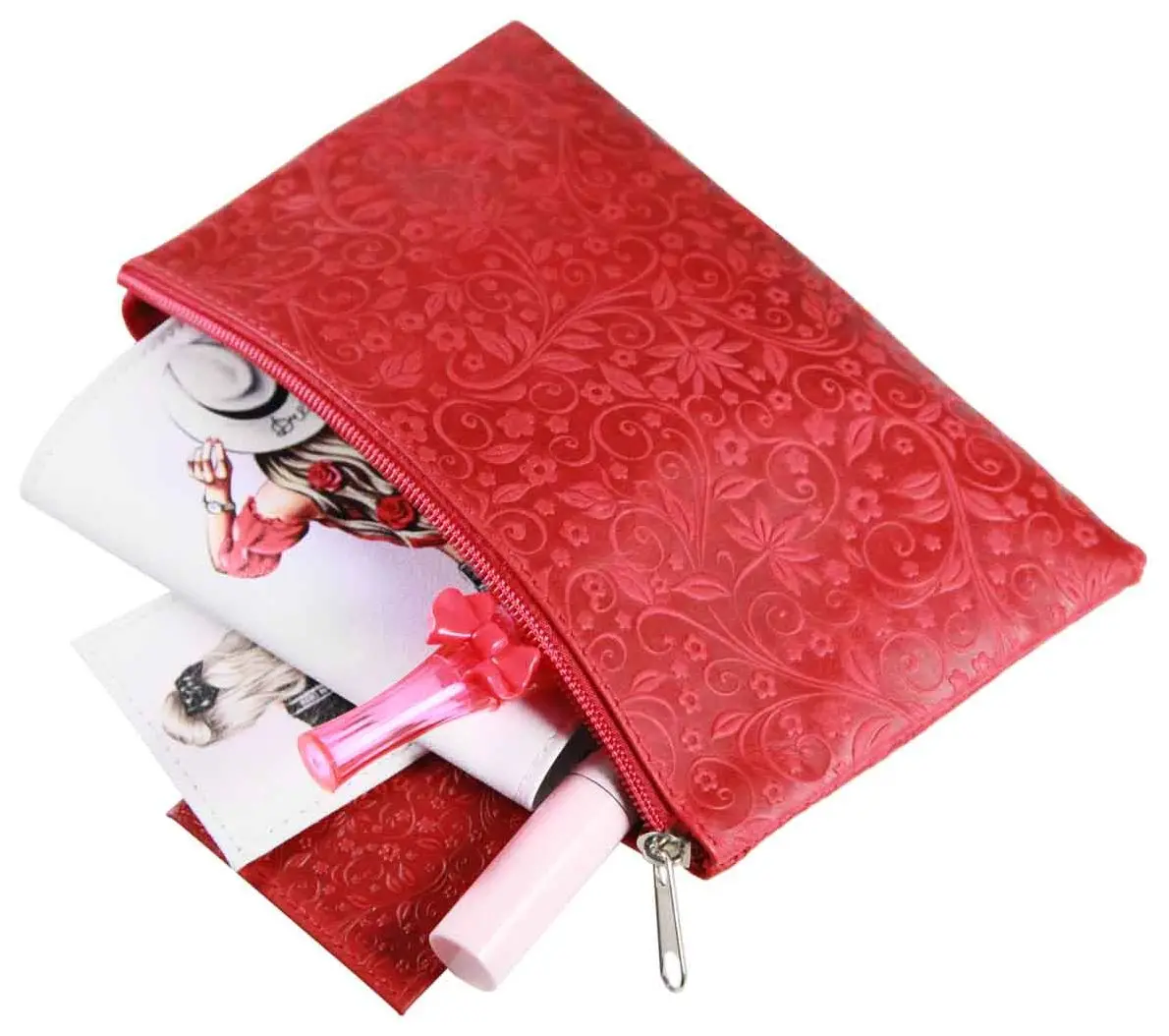 Косметичка из натуральной кожи 21x0,5x12,5 см, красная, тиснение по коже конгрев "Флаверс"