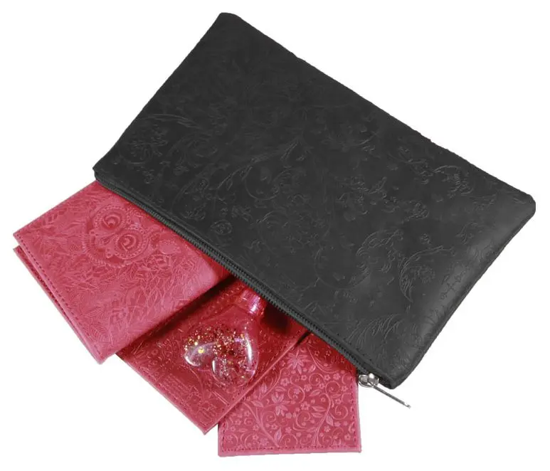 Косметичка из натуральной кожи 21x0,5x12,5 см, черная, тиснение по коже конгрев "Вдохновение"