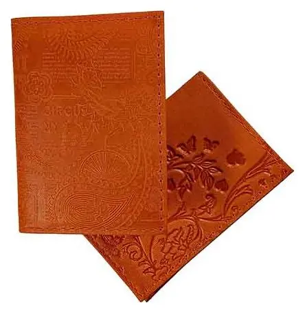 Визитница вертикальная 1 секц. (18 карманов) из натуральной кожи, рыжая, тиснение "Индийский орнамент"