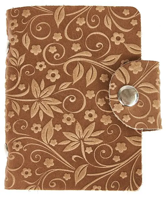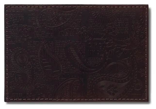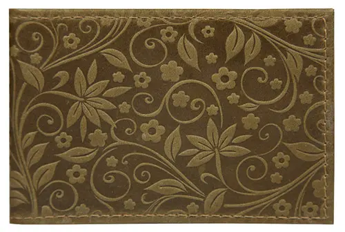 Визитница вертикальная 1 секц. (18 карманов) из натуральной кожи, коричневая, тиснение "Индийский орнамент"