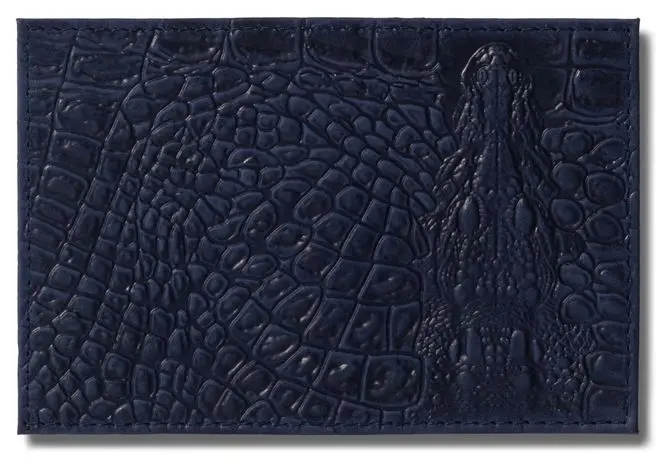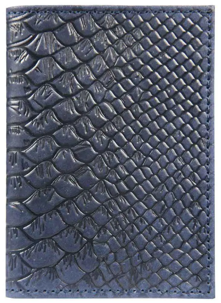 Визитница вертикальная 1 секц. (18 карманов) из натуральной кожи, синяя, тиснение "Питон"