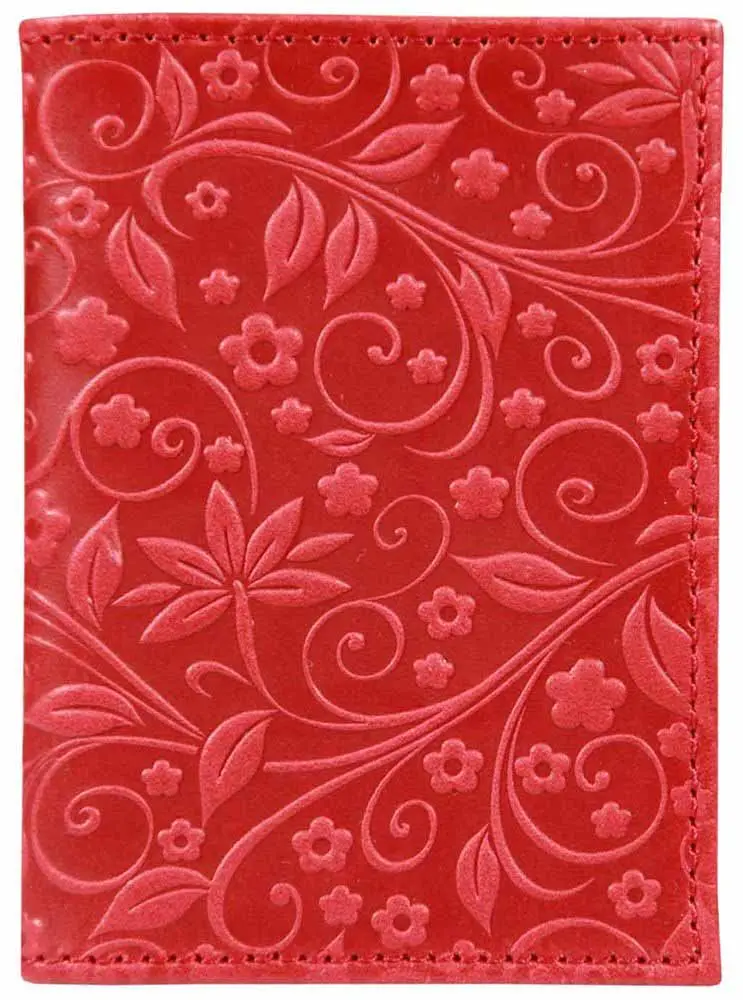 Визитница вертикальная 1 секц. (18 карманов) из натуральной кожи, красная, тиснение "Флаверс"