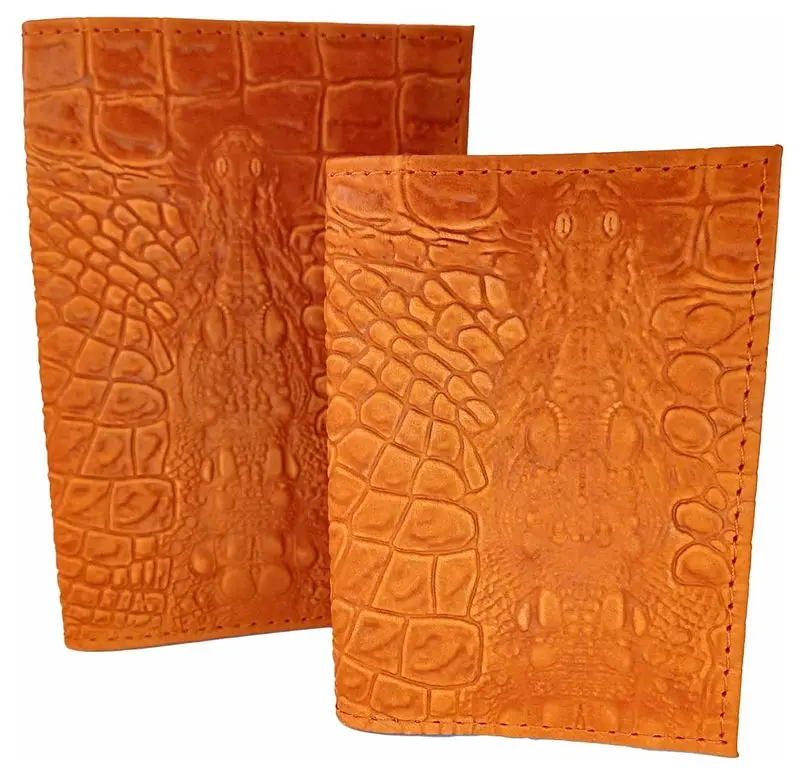 Визитница вертикальная 1 секц. (18 карманов) из натуральной кожи, рыжая, тиснение "Данди"