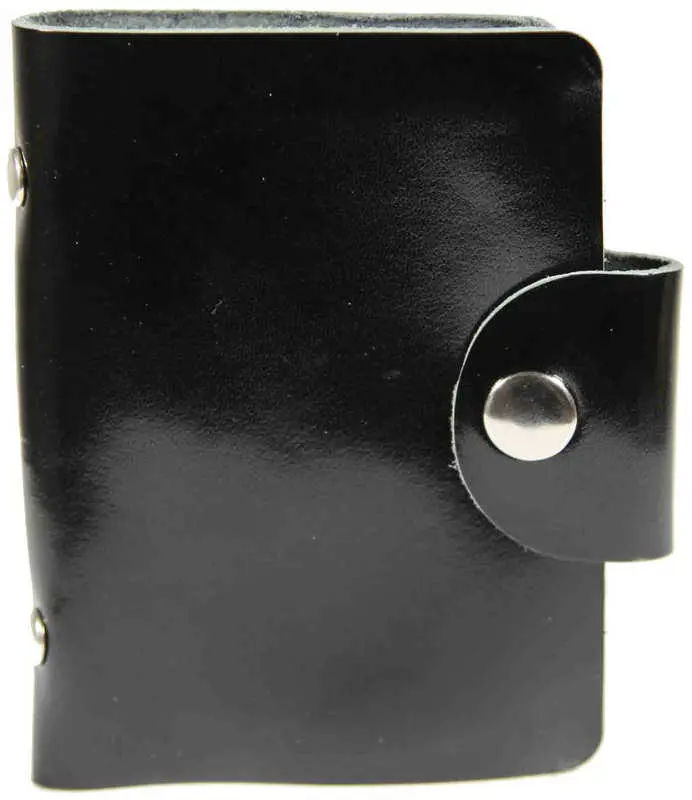 Визитница горизонтальная на кнопке из натуральной кожи черная