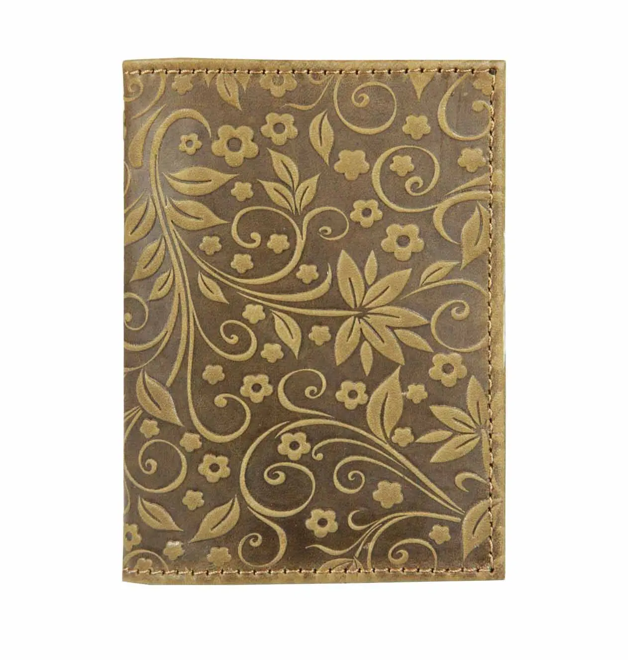 Визитница вертикальная 1 секц. (18 карманов) из натуральной кожи, оливковая, тиснение "Флаверс"