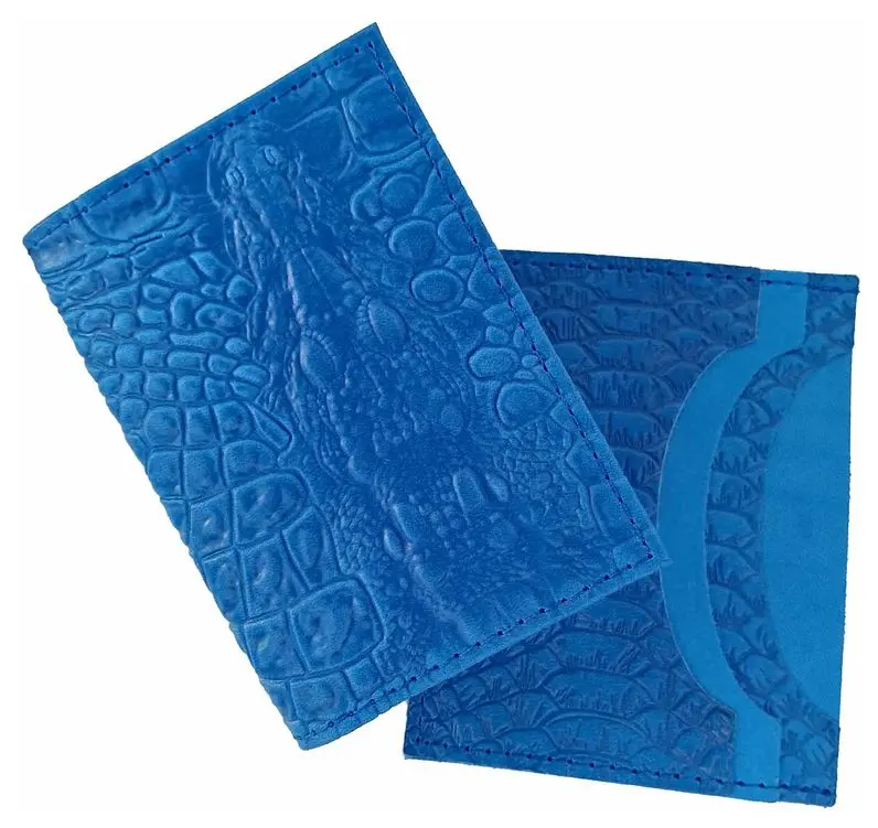 Визитница вертикальная 1 секц. (18 карманов) из натуральной кожи, голубая, тиснение "Данди"