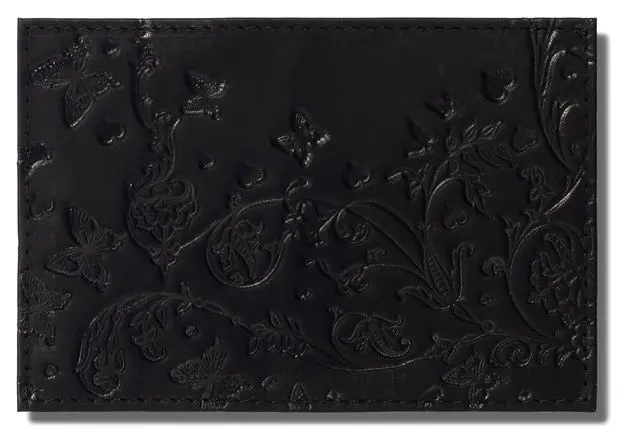 Визитница вертикальная 1 секц. (18 карманов) из натуральной кожи, черная, тиснение "Флаверс"