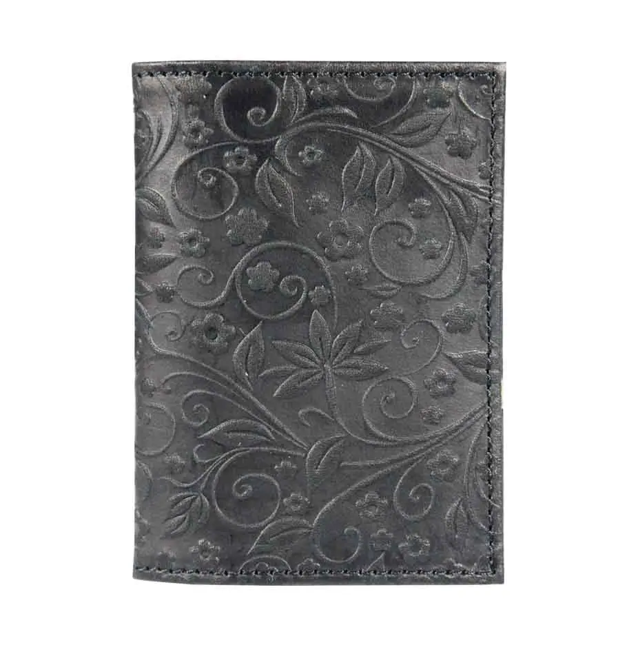 Визитница вертикальная 1 секц. (18 карманов) из натуральной кожи, черная, тиснение "Индийский орнамент"