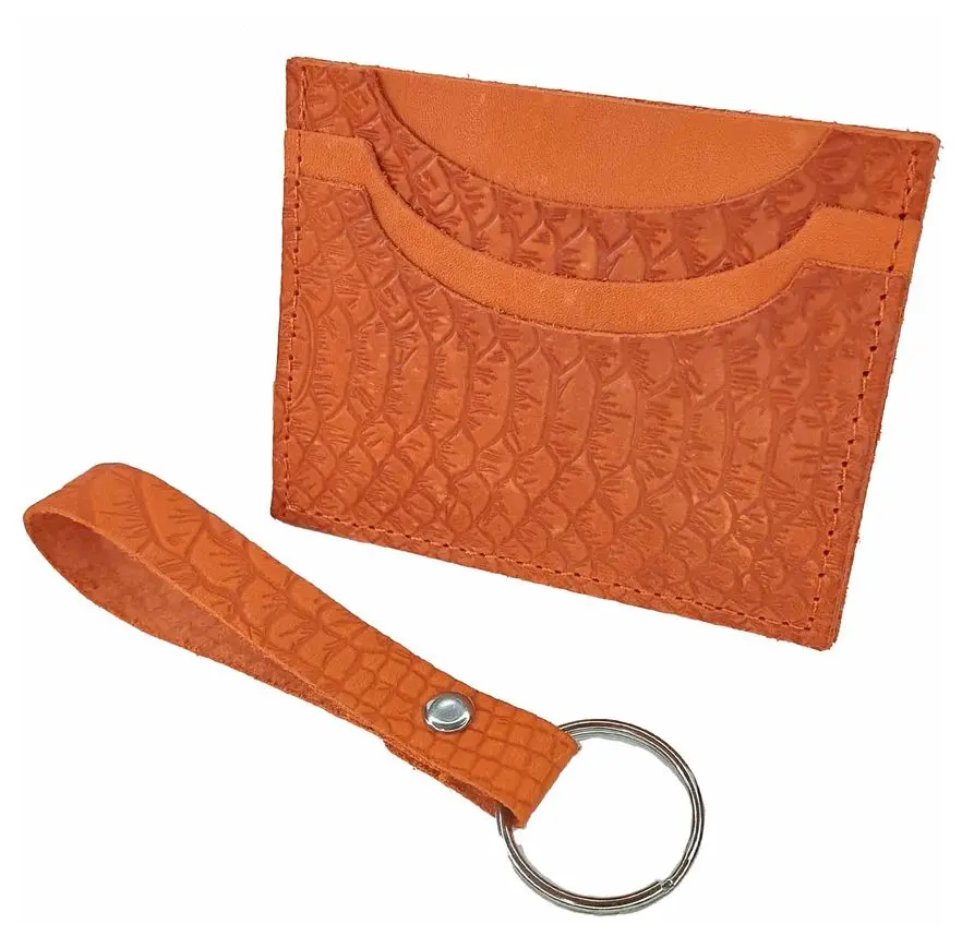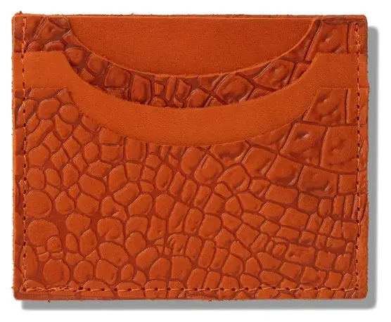 Картхолдер "Улыбка" из натуральной кожи, рыжий, тиснение "Питон"