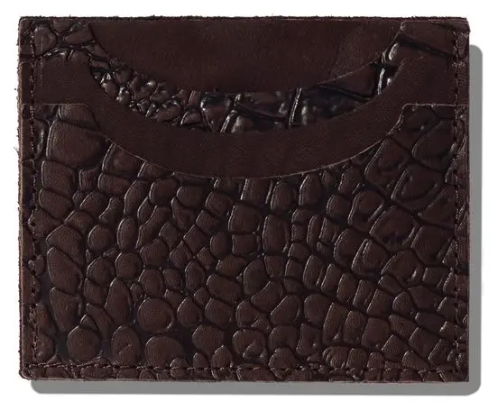 Картхолдер "Улыбка" из натуральной кожи, коричневый, тиснение "Питон"