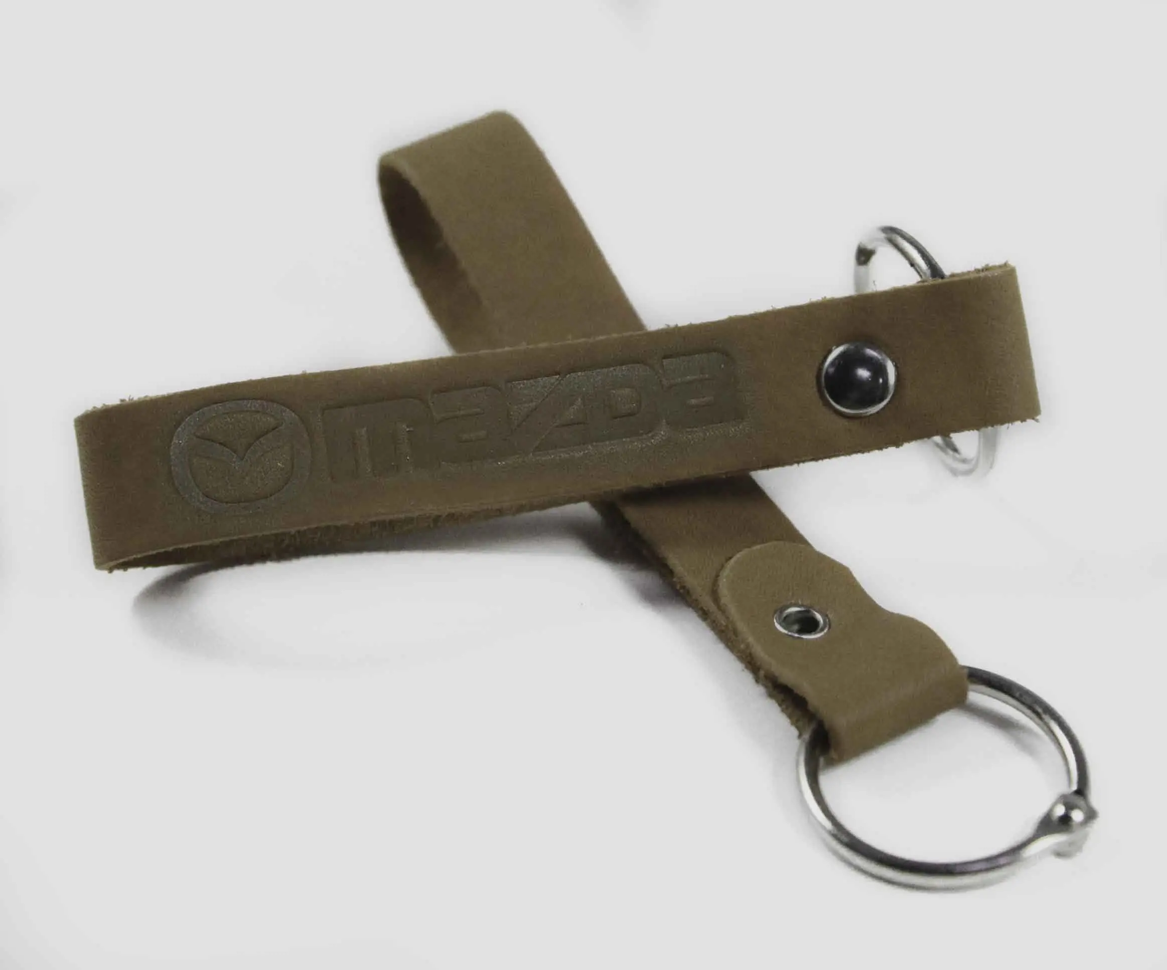 Брелок для ключей из натуральной кожи, оливковый, тиснение по коже конгрев "MAZDA"