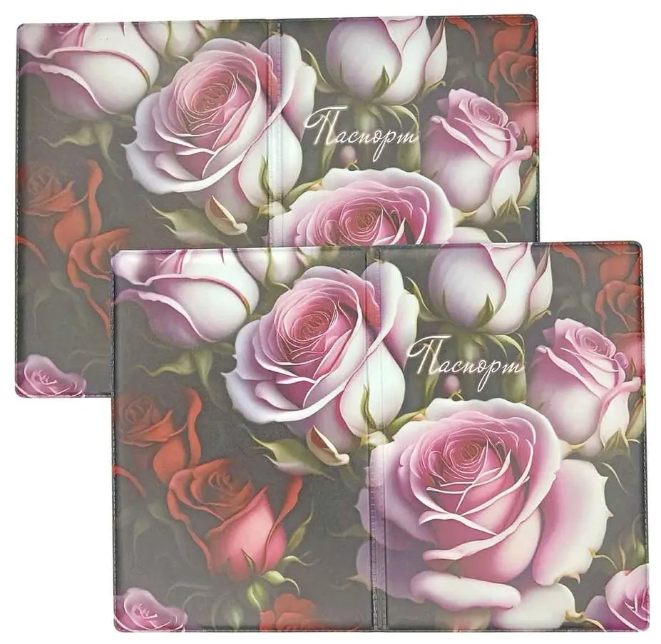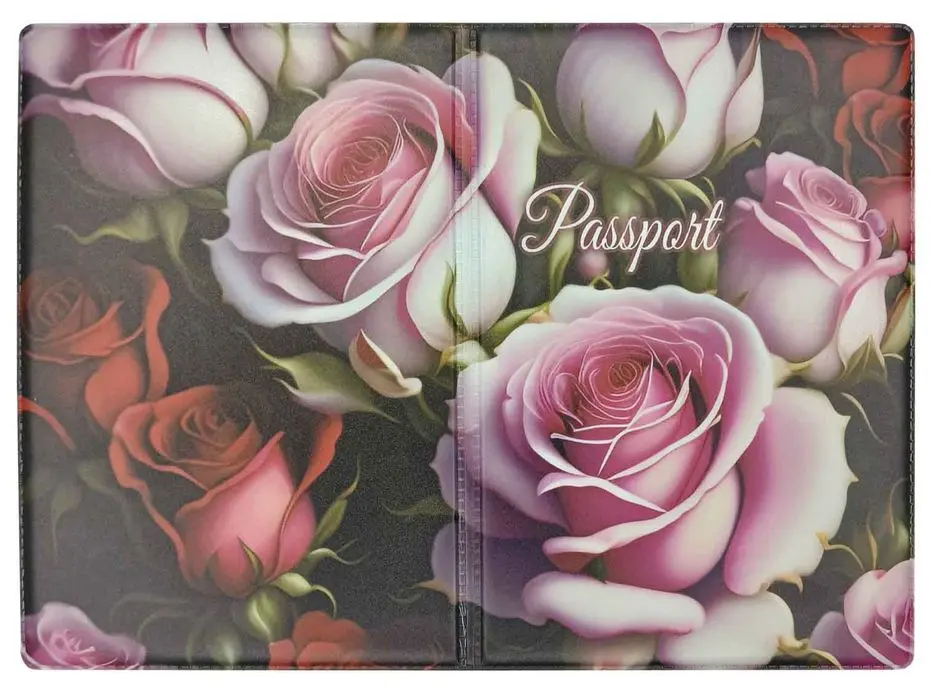 Обложка для паспорта, ПВХ матовый с печатью, принт "Пленительные розы" (PASSPORT)