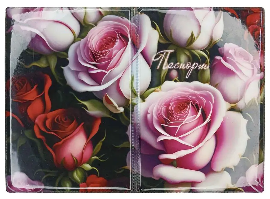 Обложка для паспорта, ПВХ глянцевый с печатью, принт "Пленительные розы" (PASSPORT)