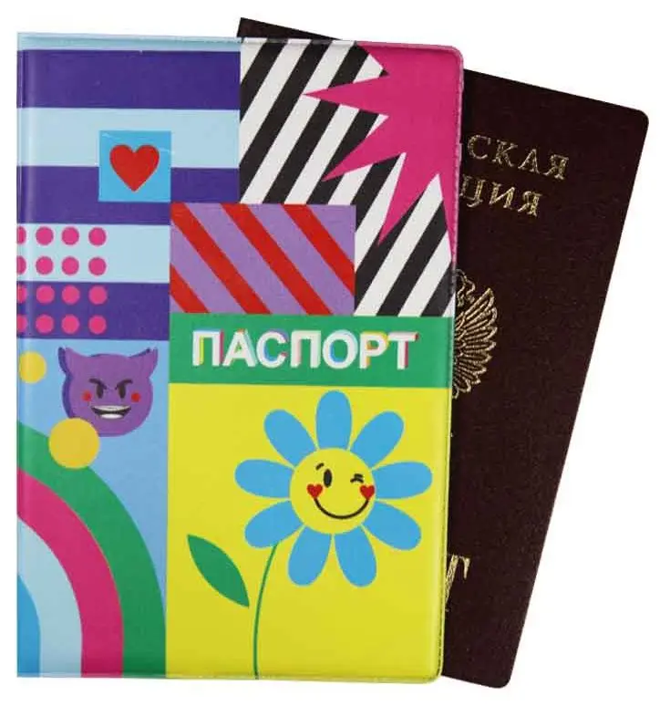 Обложка для паспорта, ПВХ глянцевый с печатью, принт "Мульти"