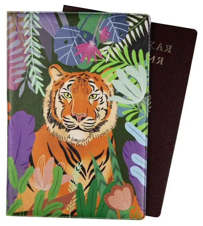 Обложка для паспорта, ПВХ глянцевый с печатью, принт "Радужный тигр"