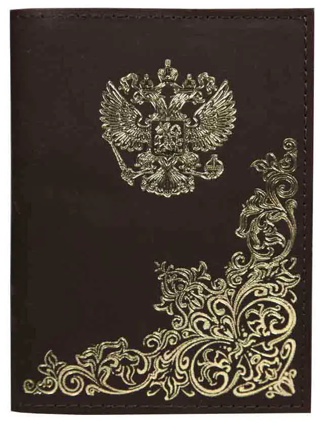Обложка для паспорта из натуральной кожи, коричневый, тиснение золотом "Народная"