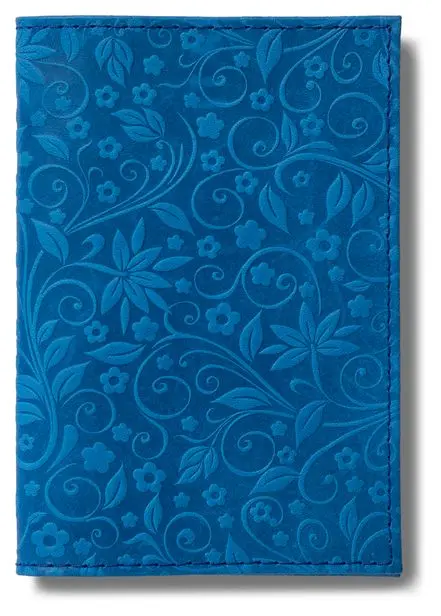 Обложка для паспорта из натуральной кожи, голубой, сплошное тиснение по коже "Флаверс"