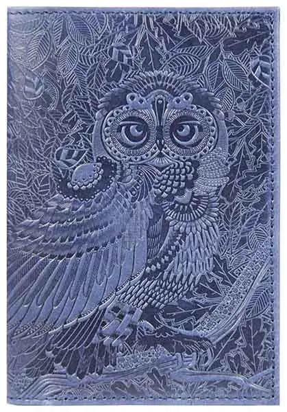 Обложка для паспорта из натуральной кожи, синий, сплошное тиснение по коже "Сова"