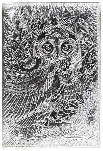 Обложка для паспорта из натуральной кожи, серебряный, сплошное тиснение фольгой по коже "Сова Металлик"