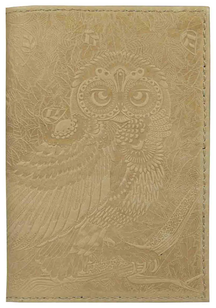 Обложка для паспорта из натуральной кожи, бежевый, сплошное тиснение по коже "Сова"