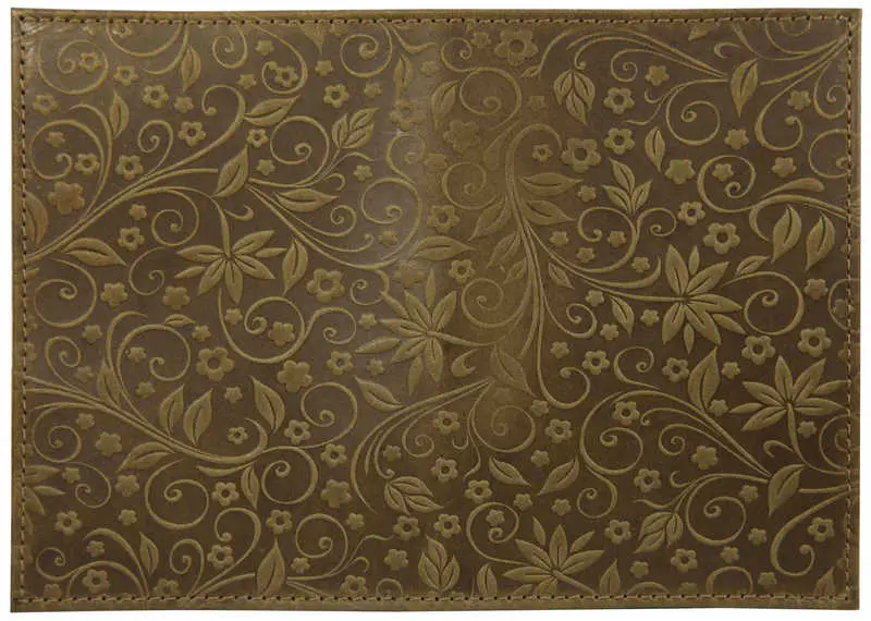 Обложка для паспорта из натуральной кожи, оливковый, сплошное тиснение по коже "Флаверс"