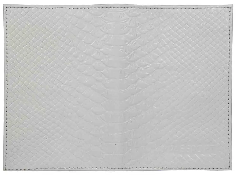 Обложка для паспорта из натуральной кожи, белый, сплошное блинтовое тиснение по коже "Питон"