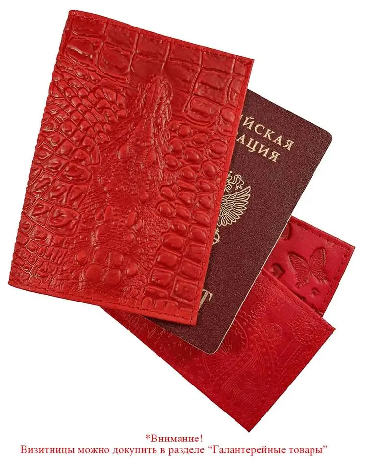 Обложка для паспорта из натуральной кожи, красный, сплошное блинтовое тиснение по коже "Питон"