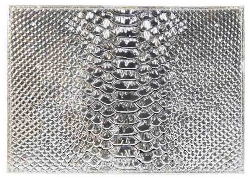 Обложка для паспорта из натуральной кожи, серебряный, сплошное тиснение фольгой "металлик" по коже "Железный Питон"