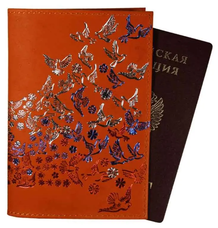 Обложка для паспорта из натуральной кожи, рыжий, тиснение тремя цветами "Летящий Флаг"