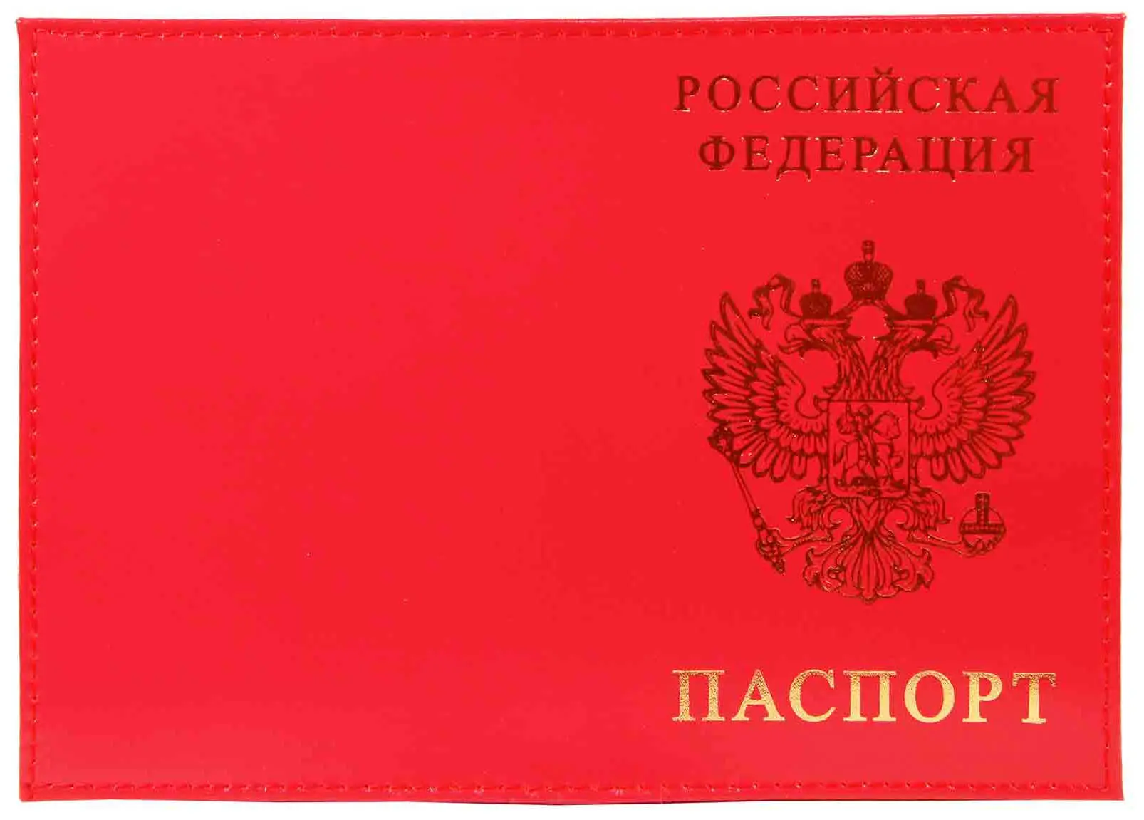 Обложка для паспорта из натуральной кожи Шик, красный, тисн.золото "РОССИЯ-ПАСПОРТ-ГЕРБ"