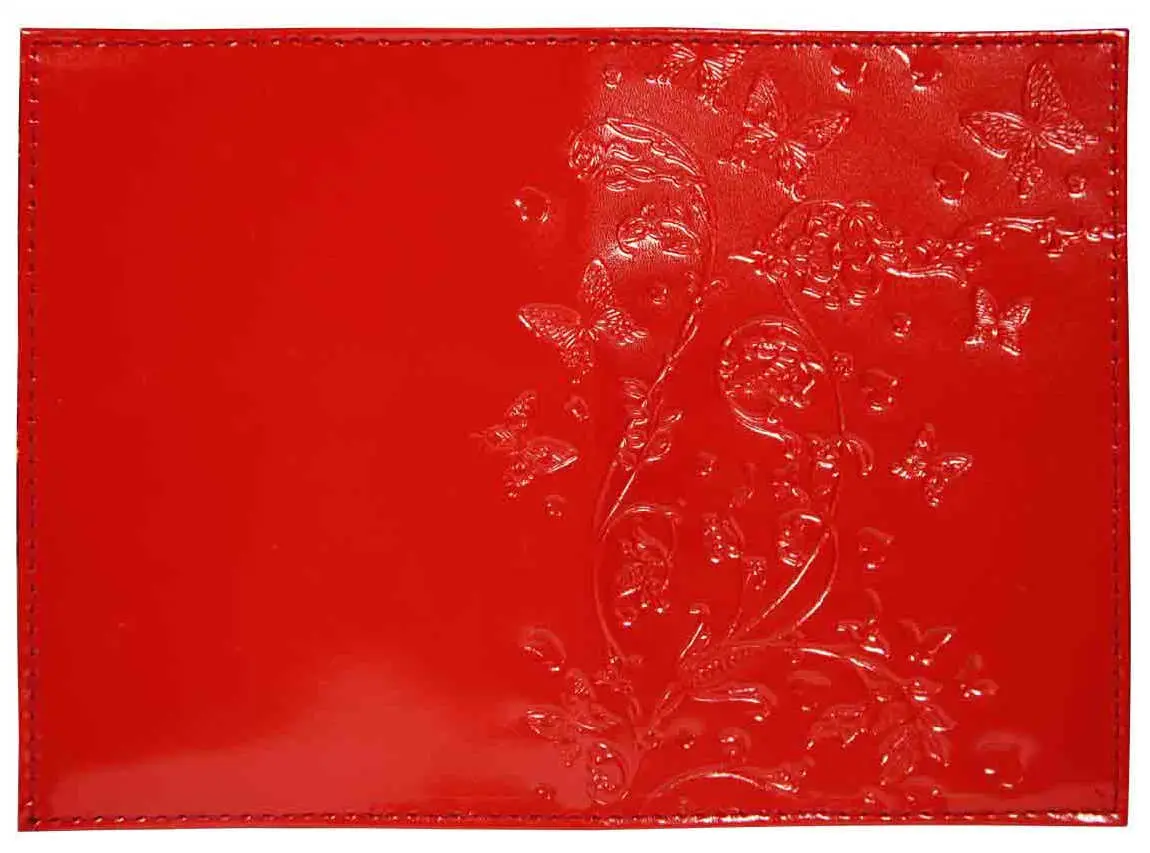 Обложка для паспорта из лакированной натуральной кожи, красный, сплошное тиснение по коже "Флаверс"