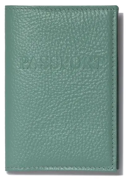 Обложка для паспорта из натуральной кожи Флотер, мята, тисн.конгрев "PASSPORT"