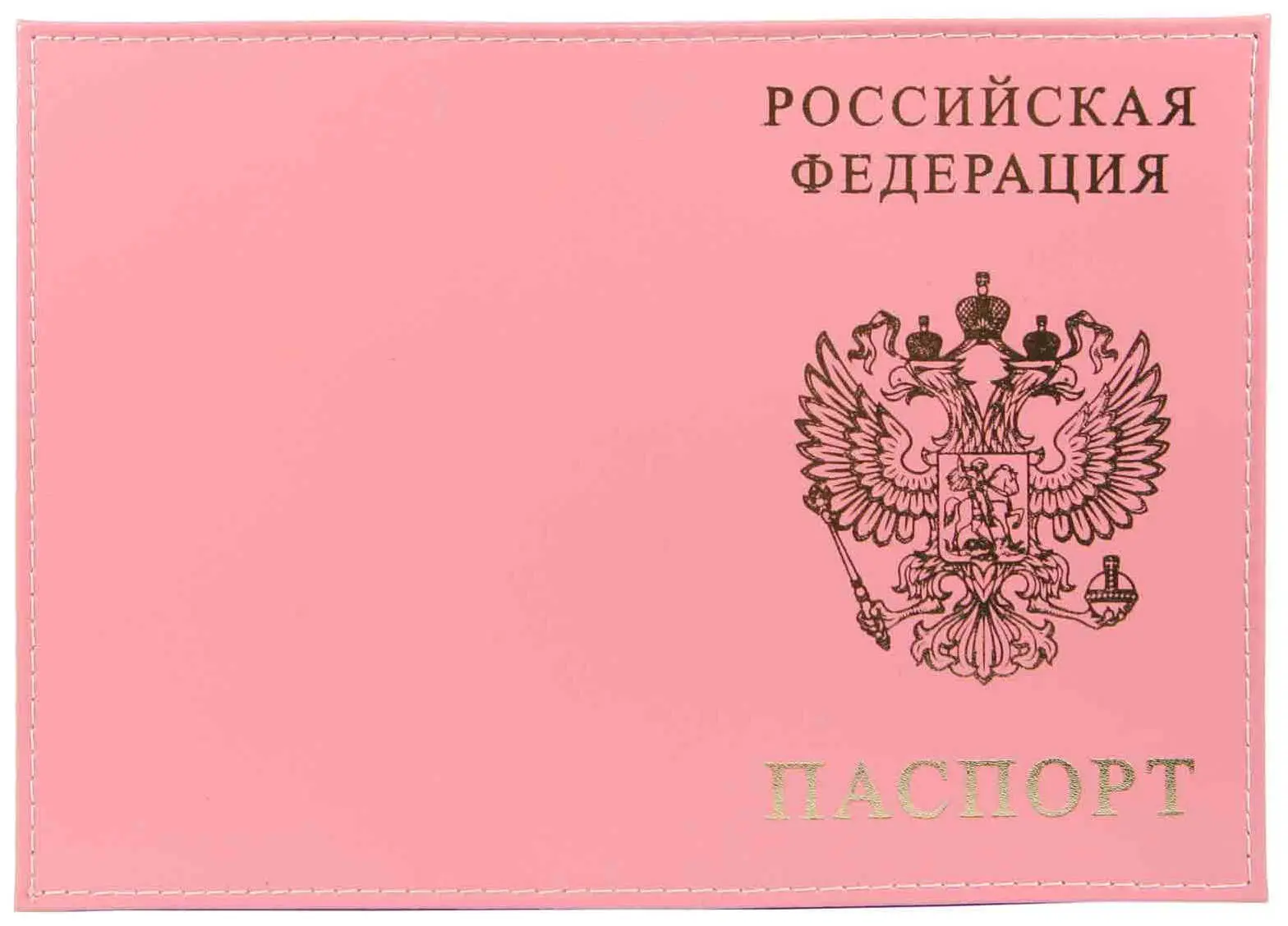 Обложка для паспорта из натуральной кожи Шик, розовый, тисн.золото "РОССИЯ-ПАСПОРТ-ГЕРБ"