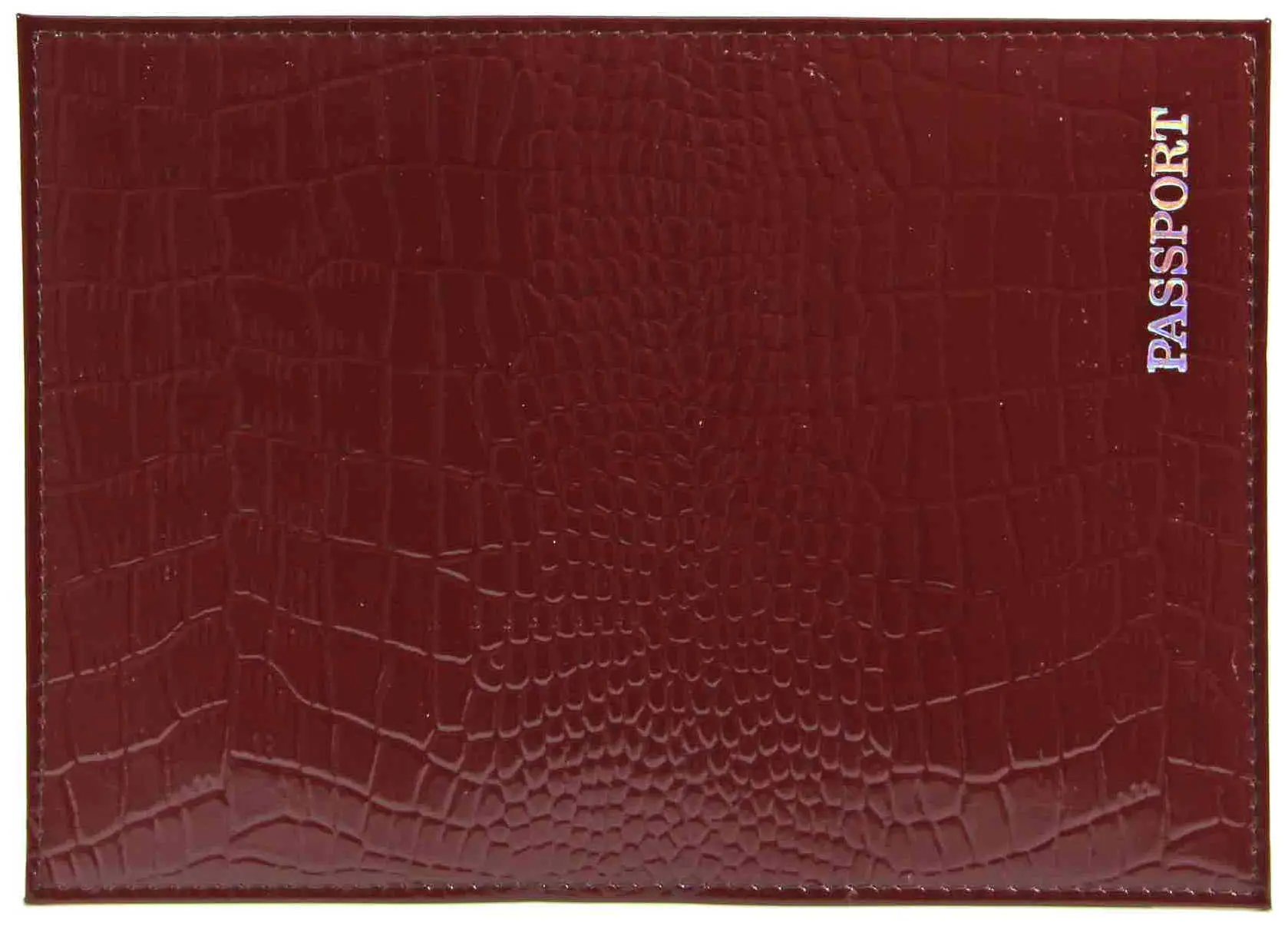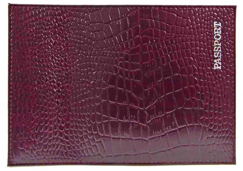 Обложка для паспорта из натуральной кожи Крокодил, бордо, тисн.серебро "PASSPORT"